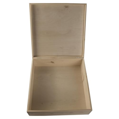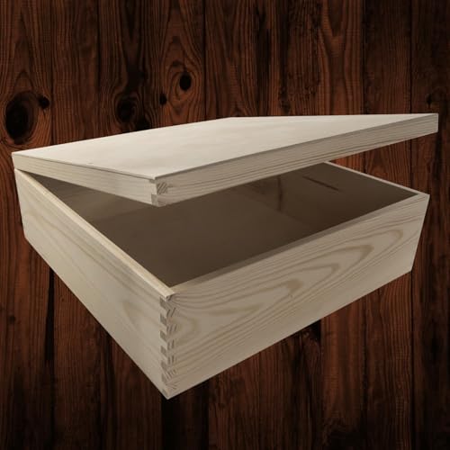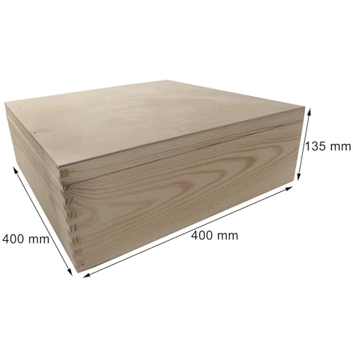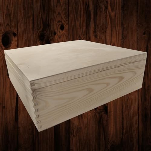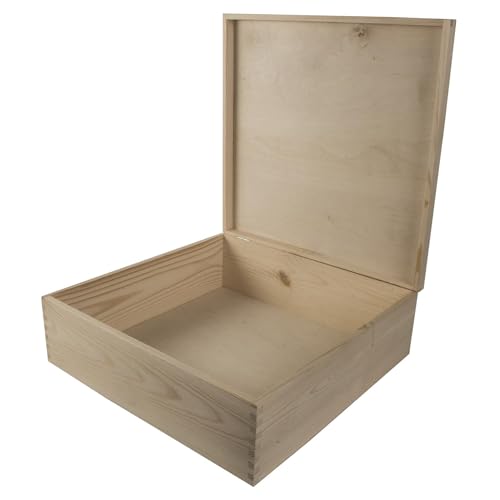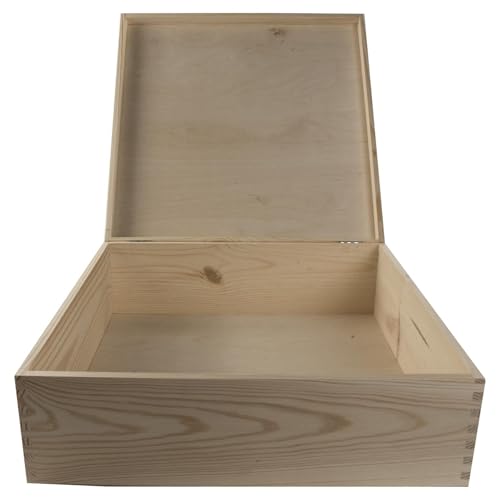 WooDeeDoo - صندوق خشبي عميق مربع كبير | 40 × 13.5 سم | حقيبة تخزين هدايا تذكارية بغطاء | صنوبر مزخرف غير مطلي من ووديدو