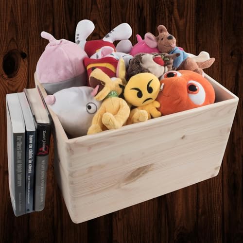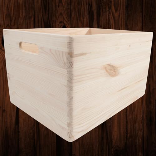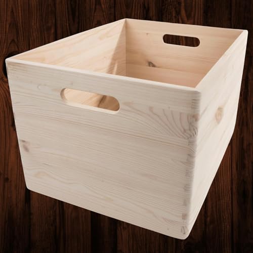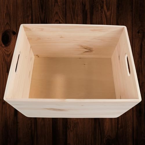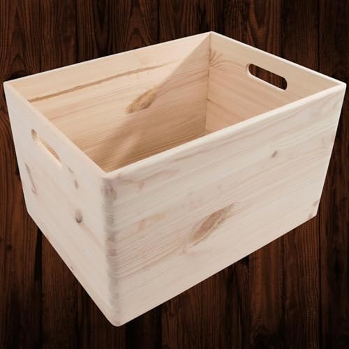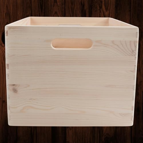 WooDeeDoo - صندوق تخزين خشبي كبير مفتوح بمقابض، مقاس 40×30×23 سم، خشب الصنوبر الزخرفي غير المطلي وغير المعالج للحرف اليدوية، صندوق بلا غطاء، صندوق منظم أدوات تذكارية