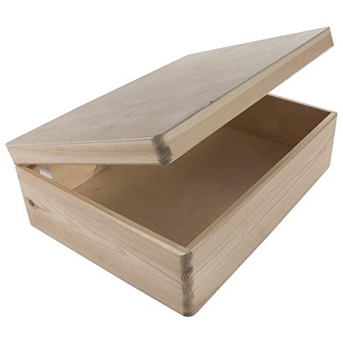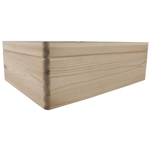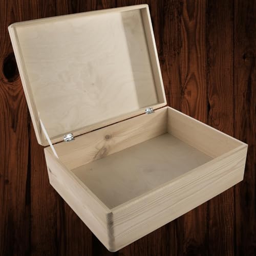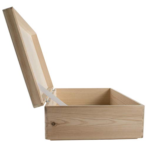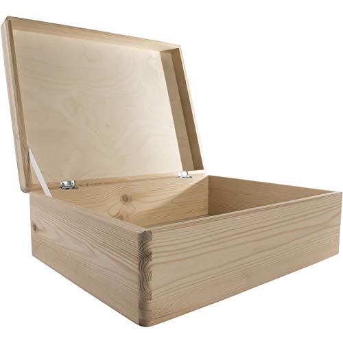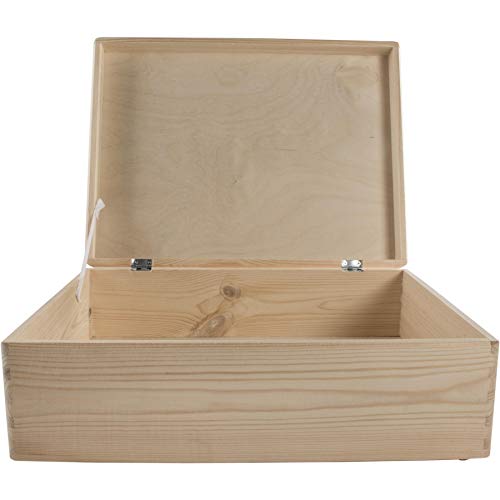 WooDeeDoo - صندوق تخزين خشبي كبير مستطيل مع غطاء مفصلي وشريط تثبيت | 40 × 30 14 سم | تذكاري | صنوبر سادة غير مطلي لتزيين الحرف اليدوية من ووديدو