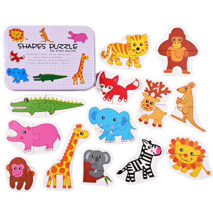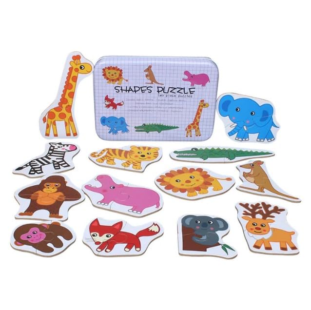 Generic - أحجية خشب على شكل حيوانات مع علبة من الصلب من قطعتين