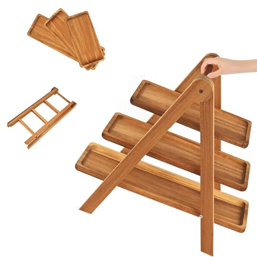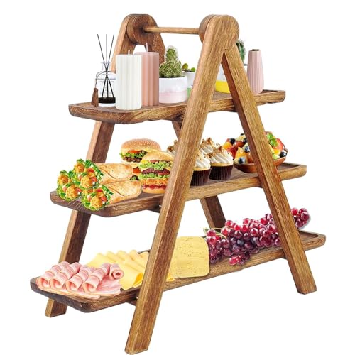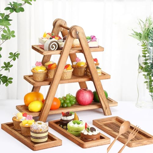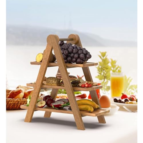 VoVoia - صينية خشبية من 3 طبقات، حامل كب كيك ثلاثي الطبقات، صينية تقديم خشبية، تستخدم للحفلات، صواني خشبية للحفلات
