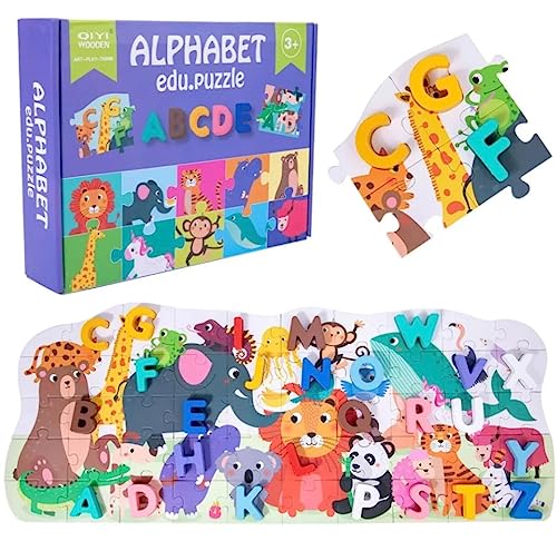 Generic - بازل حروف ثلاثية الأبعاد وحيوانات خشبية، طفل