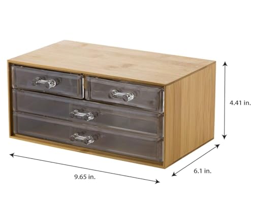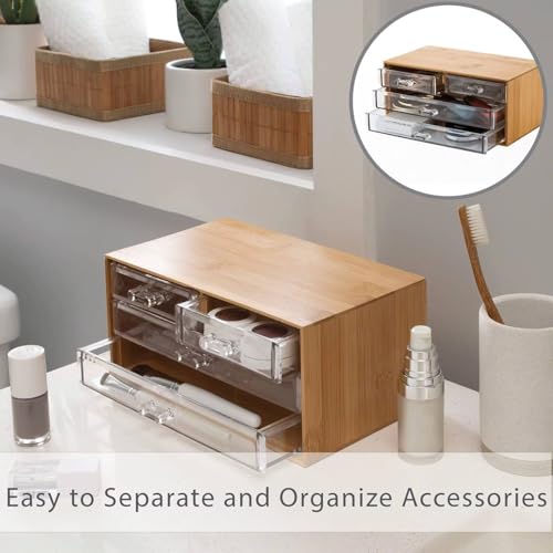 Generic - منظم مستحضرات تجميل مصنوع من خشب البامبو الطبيعي مع أدراج أكريليك شفافة، صندوق تخزين رائع للمجوهرات والمكياج، بتصميم متعدد الاستخدامات مناسب للتسريحة والمطبخ وكافة أرجاء المنزل، (قطعة واحدة)