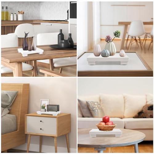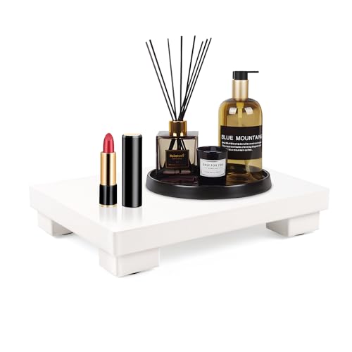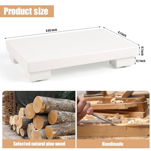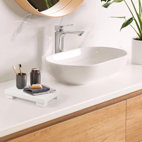 APSWUDR - رف صابون بقاعدة خشبية من ابسوودر حامل خشبي مزخرف عرض لاصيص الزهور صينية ريفية لطاولة المطبخ- نباتات الشموع الريفية للحمام والمطبخ - قطعة واحدة ابيض ايه بي سوودر مستطيلي
