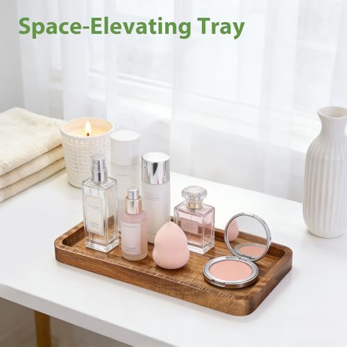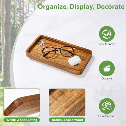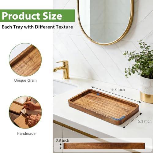 Aoravvik - صينية زينة خشبية للحمام، صواني خشبية مزخرفة صغيرة 9.9 انش للمطبخ المنزلي، خشب اكاسيا