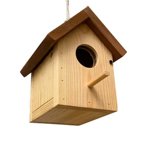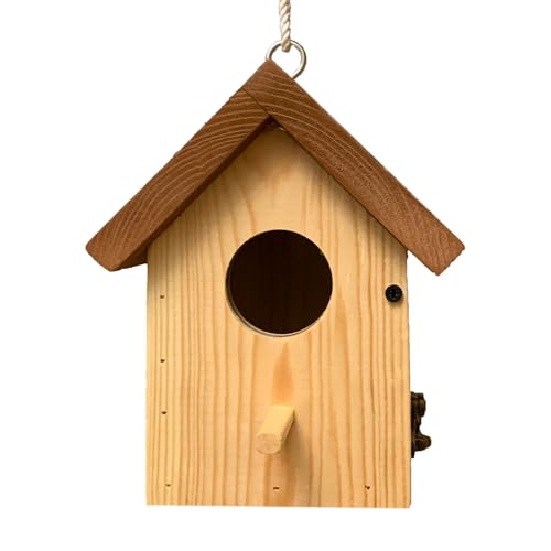 Generic - بيت طيور خشبي للاستخدام في الهواء الطلق - صندوق عش طيور معلق ريفي مع باب قابل للقفل - متوفر باللون الأحمر والبني والأخضر وألوان الخشب الطبيعي (بني، S)