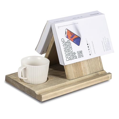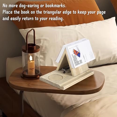Besuerte - مسند كتب خشبي، حامل كتب مثلث بيسورت مع صينية فنجان قهوة، هدايا لمحبي الكتب لا يحتاج إلى تجميع، حامل قراءة زاوية الكتب، حامل كتب لغرفة النوم، زاوية القراءة، طبيعي