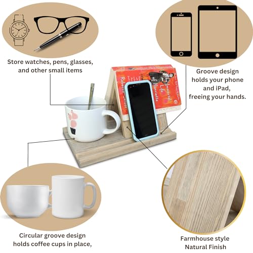 - أخدود كوب مدمج لحامل الصفحات: يتميز حامل الكتب بجانب السرير الخاص بنا بأخدود كوب مدمج، مما يحرر يديك للاستمتاع بقهوتك أو مشروبك المفضل أثناء القراءة (الأكواب غير متضمنة)