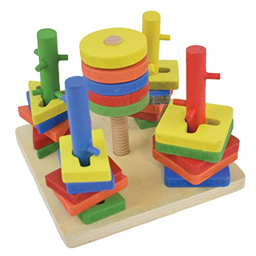 Generic - مكعبات بناء خشبية مع خمسة اعمدة لتنمية المهارات، متعددة الالوان