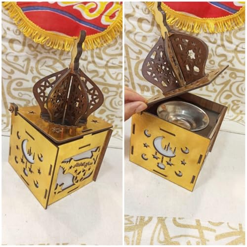 - هيكل خشبي فاخر مع لمسات ذهبية - مصنوعة من الخشب المتين مع لمسات ذهبية أنيقة، تضيف هذه المبخرة الفخامة إلى أي ديكور. يضمن هيكلها القوي استخدامًا طويل الأمد، في حين أن اللمسة النهائية الناعمة تجعلها قطعة لافتة للنظر مناسبة للديكورات الاحتفالية وإعدادات رمضان وتقديم الهدايا.