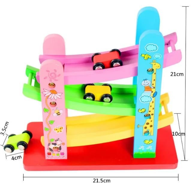Generic - لعبة منحدر خشبي للسيارات للأطفال، مع 3 سيارات سباق صغيرة، ألوان متعددة، 21.5 × 21 سم