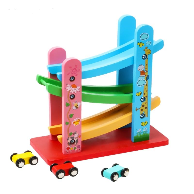 - محتويات المجموعة: لعبة منحدر خشبي ملون مع 3 مسارات منزلقة و3 سيارات سباق صغيرة لساعات من المرح والترفيه