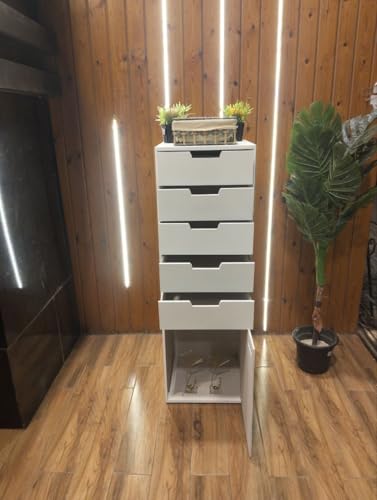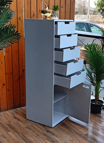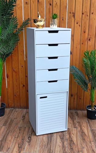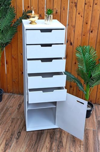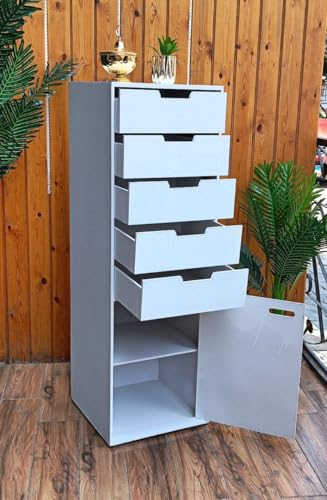 Generic - خزانة أدراج خشبية مع 5 أدراج وباب، لون أبيض ورمادي، خشب MDF، 40×40×125 سم، تخزين متعدد الاستخدامات