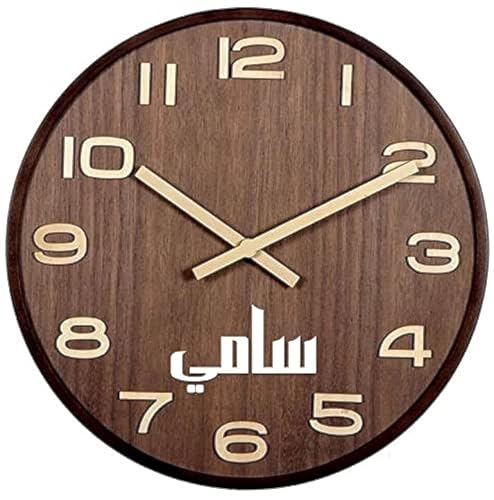 Yusef Art - ساعة خشب محفور عليها اسم سامي من يوسف ارت بني تناظري