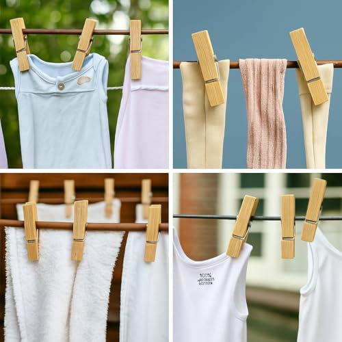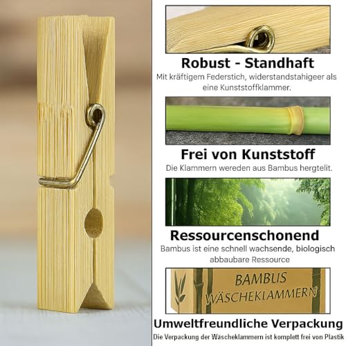 My-goodbuy24 - مشابك ملابس خشبية مستدامة من البامبو وغير معالجة، عبوة من 100 قطعة، لتعليق الغسيل والحرف اليدوية