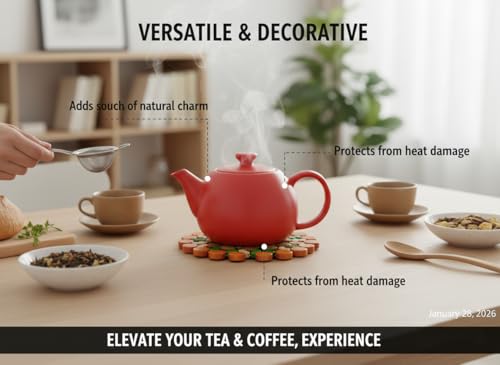 - حماية متعددة الاستخدامات من الحرارة: تتميز مجموعة قواعد الأكواب الخشبية بتصميم ماندالا زهري أنيق، مثالية لحماية أسطح المطبخ وطاولات الطعام من حرارة الأواني والمقالي والأطباق وأوعية التقديم. تجمع بين الجمال والعملية في آنٍ واحد.