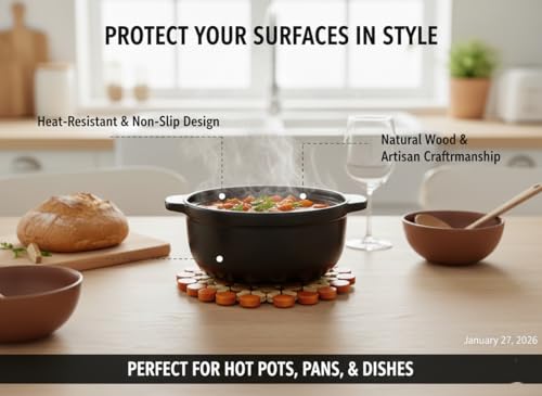 - تصميم مقاوم للحرارة: توفر حماية موثوقة من الحرارة لأسطحك بينما تسمح القطع الخشبية المتشابكة بتدوير الهواء لمنع تلف الحرارة وتراكم الرطوبة.