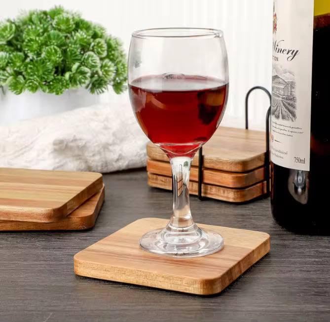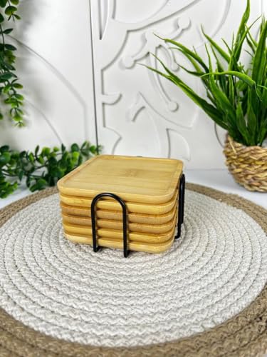 - مجموعة قواعد أكواب خشبية فاخرة: تتضمن 6 قواعد أكواب خشبية مربعة عالية الجودة مصنوعة من الخشب شديد التحمل وحامل معدني مقاوم للصدأ لسهولة التخزين.