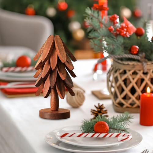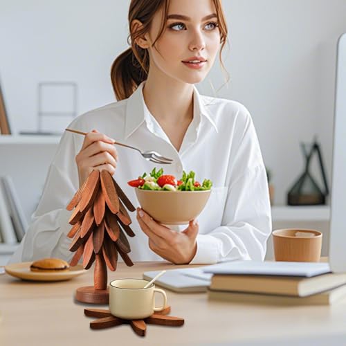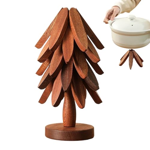 Acunny - قواعد اكواب خشبية للاطباق الساخنة على شكل شجرة، حامل على شكل شجرة الكريسماس، وسادات مقاومة للحرارة، قواعد اكواب خشبية قابلة للطي لاواني المطبخ والاواني وادوات المائدة