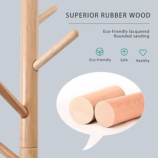 - تصميم متعدد الاستخدامات: حامل معاطف من الخشب الطبيعي بعدد 8 خطافات تعليق مثالي لتعليق المعاطف والقبعات والحقائب والإكسسوارات في المنازل أو المداخل أو الممرات.