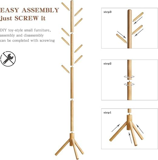 - مواصفات التجميع: حامل معاطف بتصميم شجرة متفرعة سهلة التجميع مع 8 خطافات موضوعة بشكل استراتيجي ولمسة نهائية من الخشب الطبيعي تتماشى مع أي ديكور.