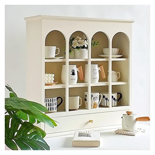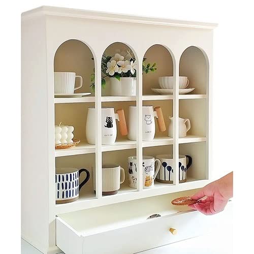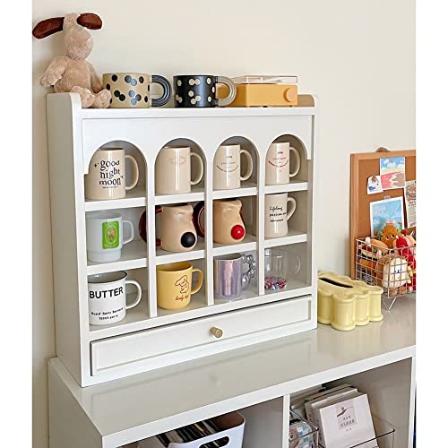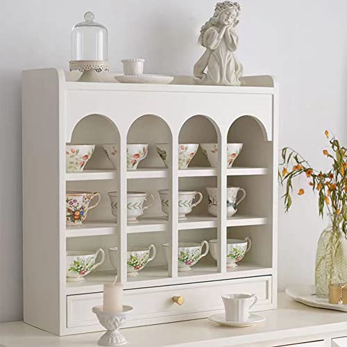 Generic - وحدة تخزين خشبية لتنظيم مجات القهوة، منظم تخزين أكواب المياه، دولاب مطبخ من 3 طبقات مزود بدرج تخزين لدولاب سطح الطاولة سعة 12 كوب، (لون: أبيض؛ المقاس: 58 × 18 × 56 سم)