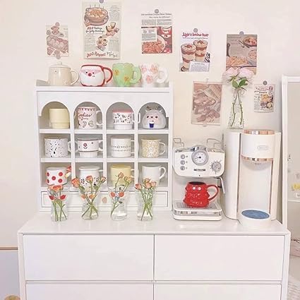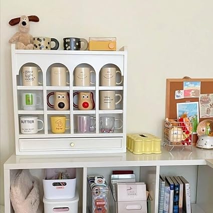 - هل ما زلت قلقًا بشأن فوضى أكوابك المفضلة وعدم وجود مكان مناسب لوضعها؟ دع منظم تخزين الأكواب هذا المستوحى من الطراز القديم يحل مخاوفك. حامل أكواب بثلاثة طوابق مع درج يستوعب (ما لا يقل عن 12 كوبًا) مما يتيح لك عرض وتخزين وإبراز مجموعتك من الأكواب في مساحة محدودة. (لا حاجة إلى تركيب).