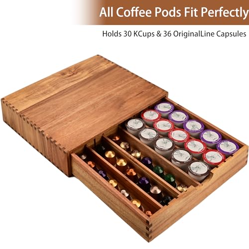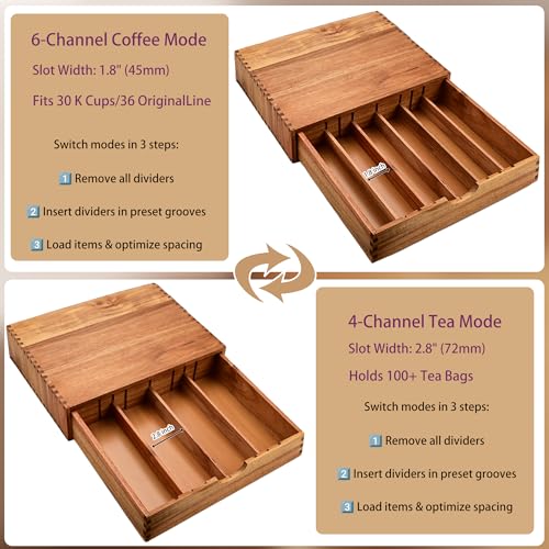 - سعة التخزين: درج خشبي أنيق ينظم ويخزن ما يصل إلى 36 كبسولة قهوة للاستخدام الفردي بتصميم موفر للمساحة.