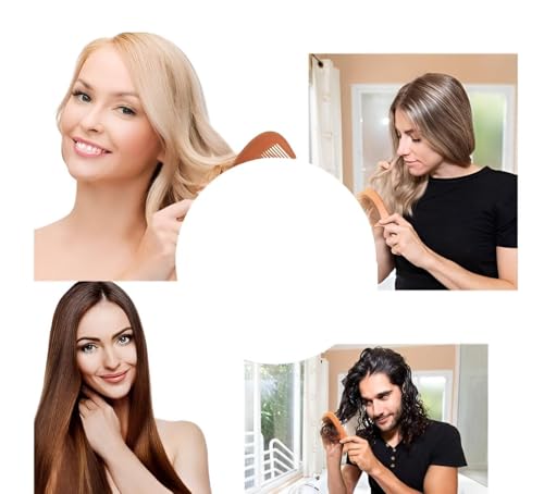 Generic - مشط خشبي - مشط طبيعي مصنوع يدويًا من الخشب المستدام مع أسنان ناعمة تقلل من تقصف الشعر وتعزز الدورة الدموية لفروة الرأس للحصول على شعر حريري مغذي بعمق يوميًا