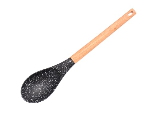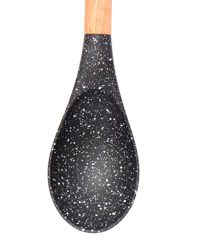 Generic - ملعقة طهي خشبية برأس أسود بنمط منقط غير لاصق، أدوات مطبخ بمقبض طويل