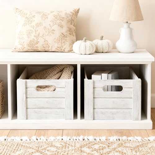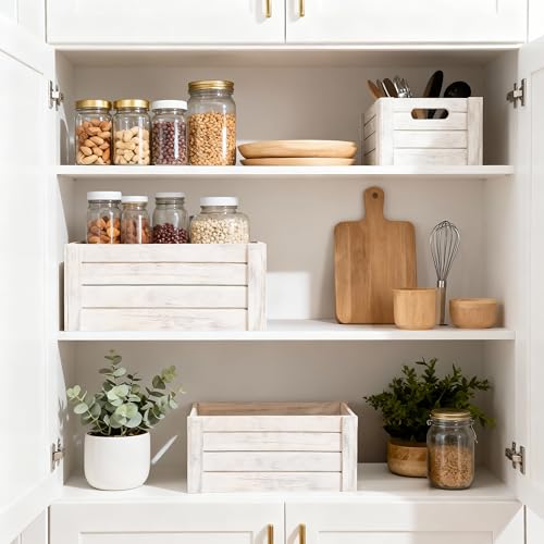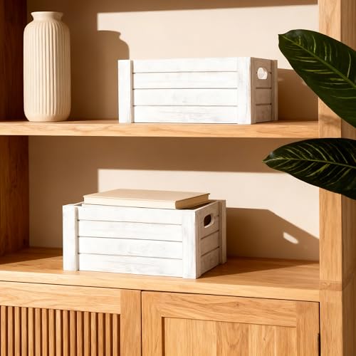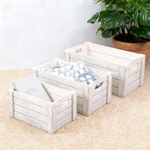 Wickerfield - اقفاص خشبية بمقابض مقطوعة، صندوق تخزين صينية خشبية، ارفف خشبية، صندوق ليلة الكريسماس (مجموعة (S+M+L))