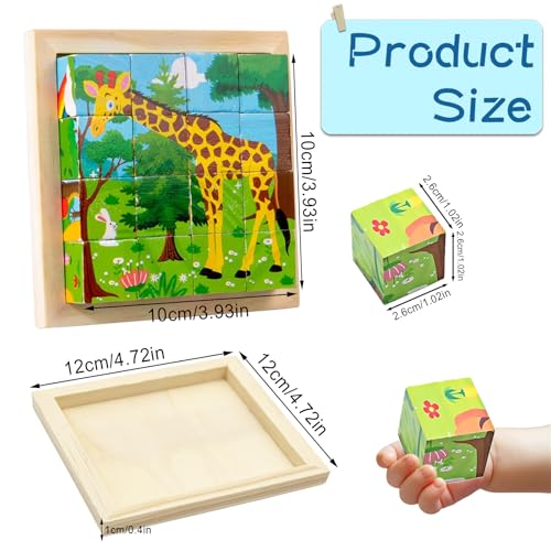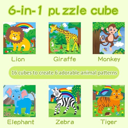 - لعبة بازل مكعبات 6 في 1:تمنحك هذه اللعبة الخشبية ستة أشكال في منتج واحد، وهي سهلة اللعب. يمكن لـ 16 مكعبًا تكوين 6 رسومات لحيوانات مبهجة، كما يضمن الإطار الخشبي المتين تخزينًا آمنًا لجميع قطع البازل.