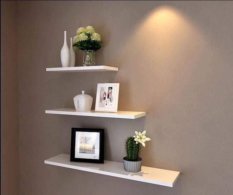 - طقم مكون من 3 رفوف بأحجام مختلفة لتوزيع متوازن على الجدار