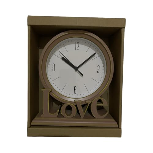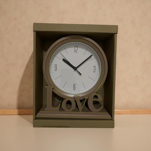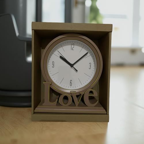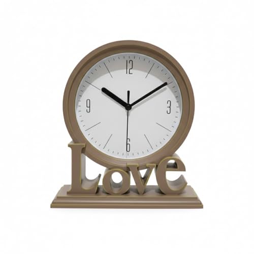 Generic - ساعة مكتب خشبية مع كلمة Love، تصميم عصري، لون بيج، للديكور المنزلي