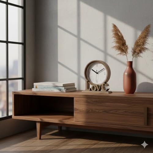 - تصميم عصري: ساعة مكتب خشبية بتصميم أنيق مع كلمة "Love" مدمجة في القاعدة لإضافة لمسة رومانسية للمنزل