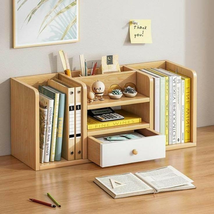 Generic - منظم خشبي لسطح المكتب مع درج، وحدة أرفف تخزين الكتب - مقاس 60 × 22 × 33 سم