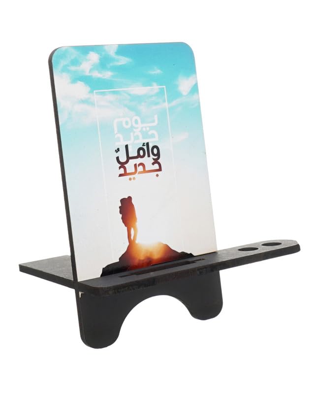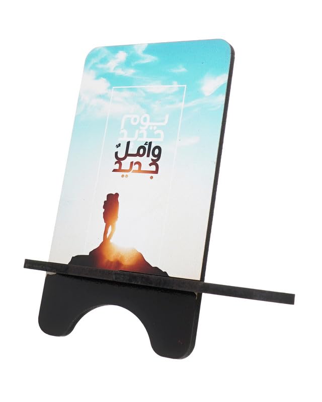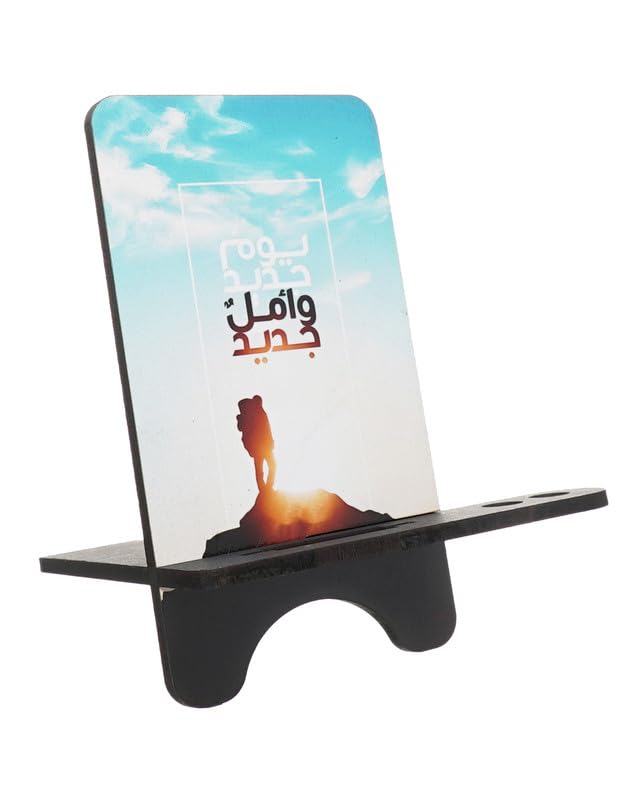 Generic - حامل موبايل خشبي مكتبي مزخرف بعبارة عربية - متعدد الالوان Ebtekar - 55