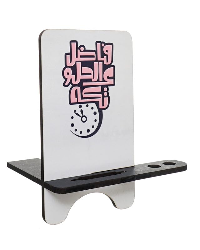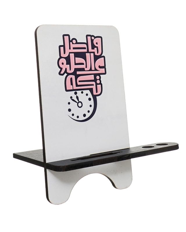 Generic - حامل موبايل خشبي مكتبي مزخرف بعبارة عربية - متعدد الالوان Ebtekar - 65