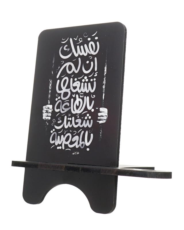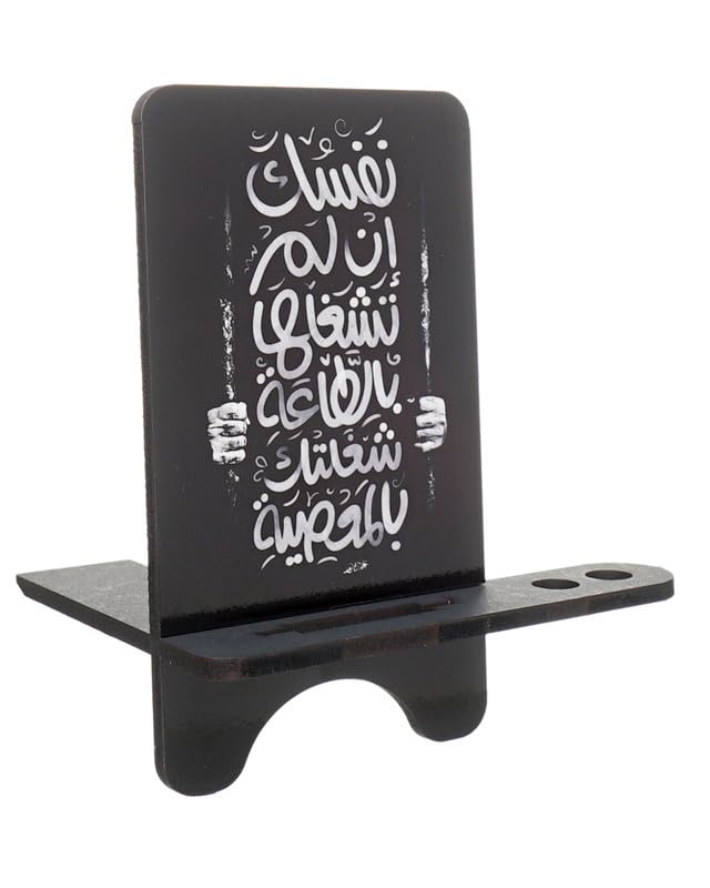 Generic - حامل موبايل خشبي مكتبي مزخرف بعبارة عربية - متعدد الالوان Ebtekar - 69