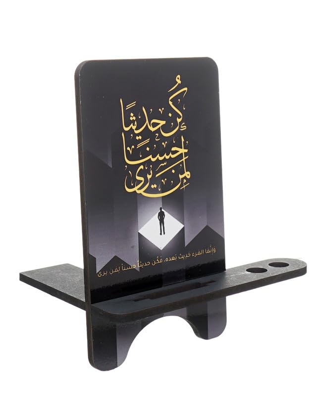 Generic - حامل موبايل خشبي مكتبي مزخرف بعبارة عربية - متعدد الالوان Ebtekar - 72