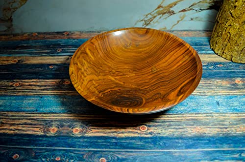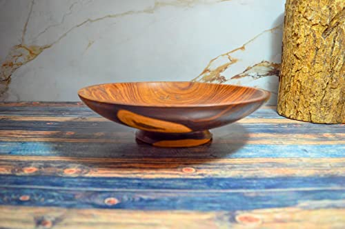 Egypt Antiques - طبق حلوى خشبي مصنوع يدويًا بألوان طبيعية 100% ومعالج بزيت الزيتون