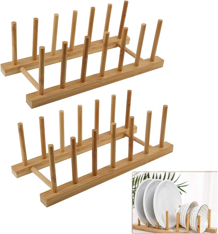 - منظم خشبي فاخر: مصنوع من الخشب المعالج المتين والمقاوم للماء مع 6 فتحات لتخزين الأطباق والأغطية والأكواب بشكل أنيق وآمن.