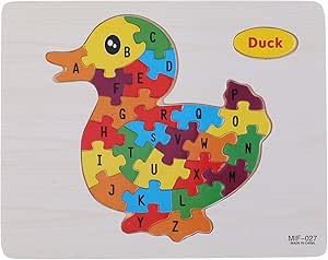- بازل تعليمي: يتميز البازل الخشبي الملون بتصميم بطة مع أرقام وحروف، مما يساعد الأطفال على تطوير قدرات حل المشكلات والتنسيق بين اليد والعين.