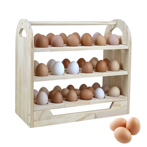 generic - حامل بيض خشبي يوضع على سطح الطاولة مع مقبض، صينية بيض خشبية بثلاث عجلات تحمل 54 بيضة، رف تخزين بيض قابل للفصل لديكور المطبخ والمزرعة