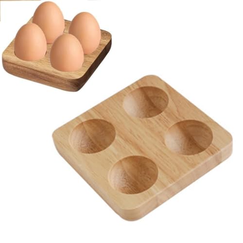 Kipzeui - حامل بيض من الخشب، صينية عرض وتخزين البيض، صينية تخزين بيض من 4 مساحات، حامل بيض للمطبخ أو الثلاجة