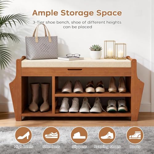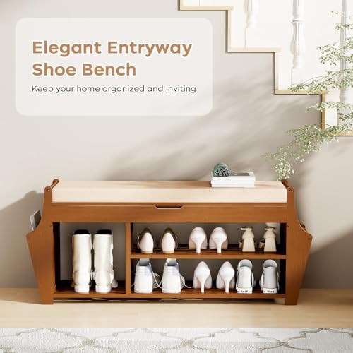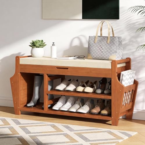Generic - مقعد أحذية خشبي للمدخل مع مساحة تخزين,WH-SB-001-BR-X1