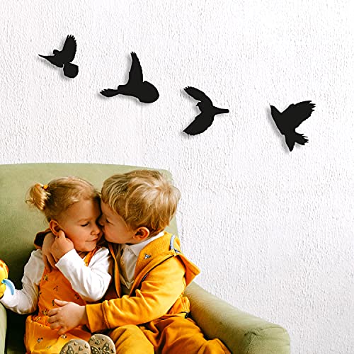 Wooden Factory - تابلوه حائط بتصميم 4 طيور بلون اسود مصنوع من الخشب ومقصوص بالليزر وودن فاكتوري - DO195S5032