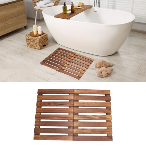 Cocoarm - سجادة ارضية خشبية، سجادة دش خشبية قابلة للطي، سجادة حمام غير قابلة للانزلاق مع 14 قدم غير قابلة للانزلاق، سجادة ارضية داخلية وخارجية، سجادة حمام سباحة