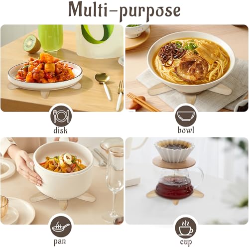 - قواعد أطباق خشبية للأطباق الساخنة: قواعد الأطباق الخشبية هذه مثالية لتقديم الأطباق الساخنة ويمكن استخدامها كصواني خشبية لحماية سطح الطاولة. (يمكنك شطف قواعد الأطباق الخشبية بالماء وتجفيفها).