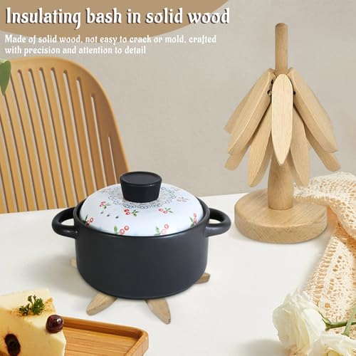- المادة: المنتج مصنوع من خشب الزان الصلب، صحي وصديق للبيئة، واقيات الأطباق الخشبية هذه مثالية لتقديم الأطباق الساخنة والتصميم الفريد للشجرة يضيف لمسة من الطبيعة إلى طاولتك.